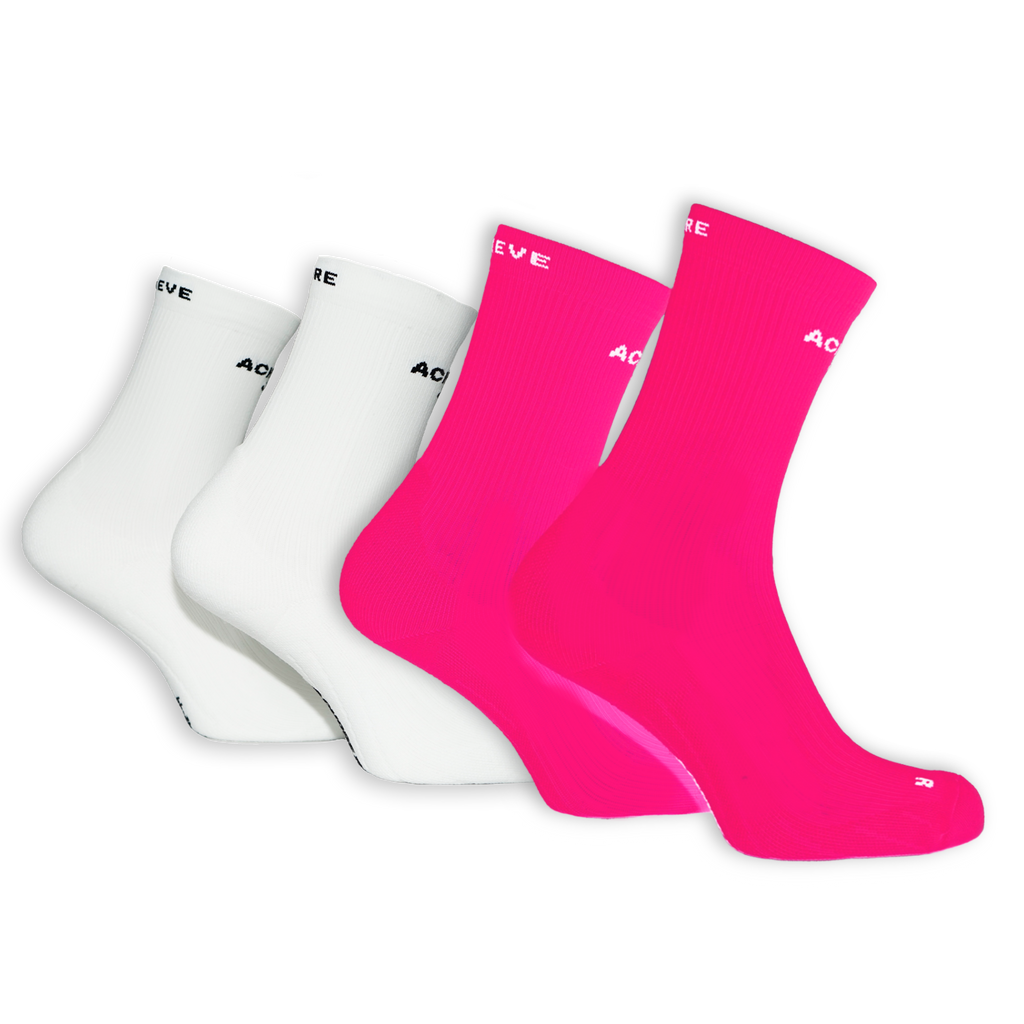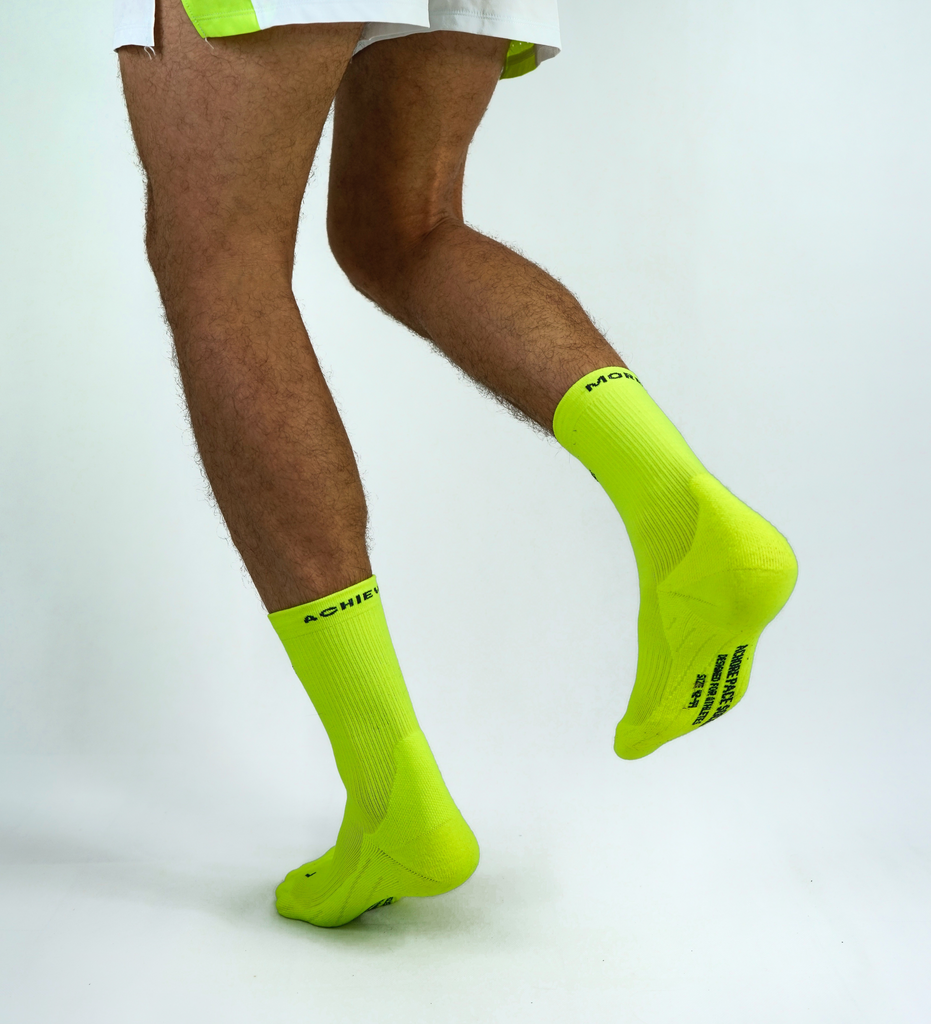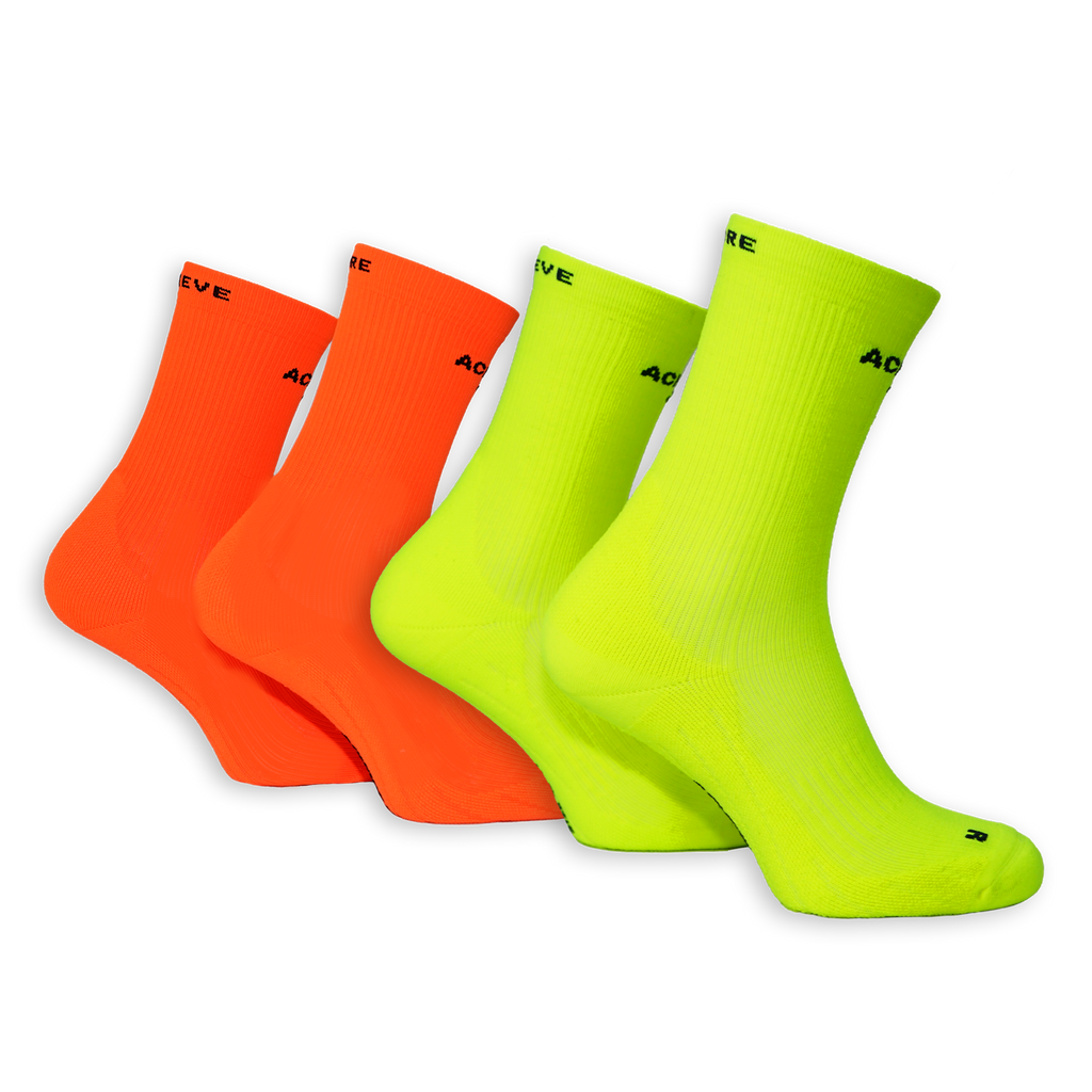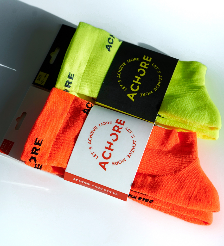 Short compression socks in a pack of 2: neon yellow and neon orange. The ergonomic fit and breathable material make the ACHORE Pace Socks the perfect sports socks for intensive training sessions and competitions. The integrated compression provides a deep sensory activation of the skin receptors and helps to stabilize your joints.