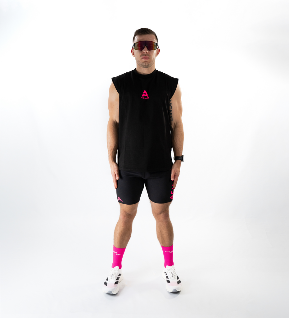 Take your workouts to the next level with the ACHORE Athlete Tanktop — the ultimate training shirt for peak performance. Designed to complement our signature Pace Socks, this tanktop completes your ACHORE look with effortless style. Made from a premium material blend, it offers a lightweight, elastic feel that moves with you. The high-quality 3D print and modern design make it a standout choice for the gym or the track.